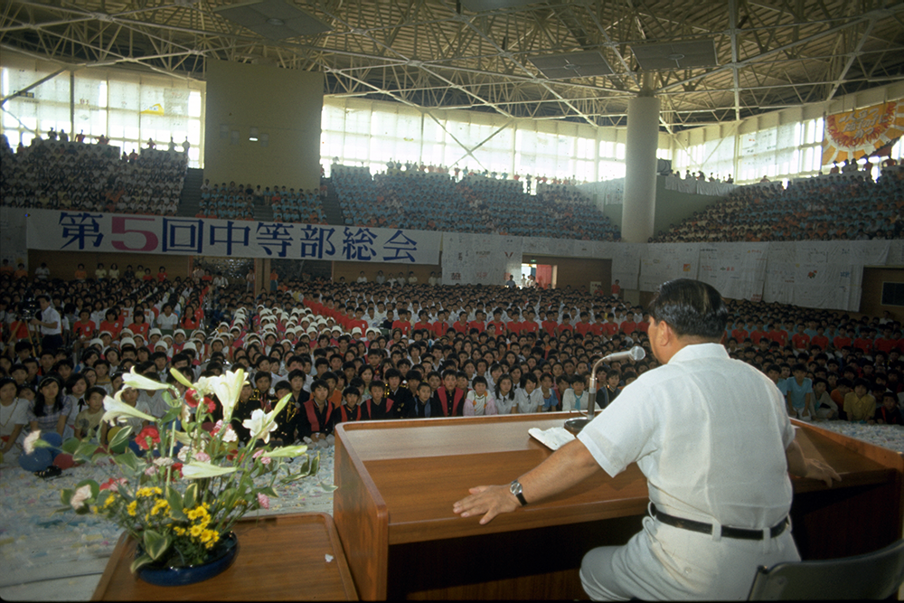 1974年8月に行われた「第5回中等部総会」(東京・八王子の創価大学)