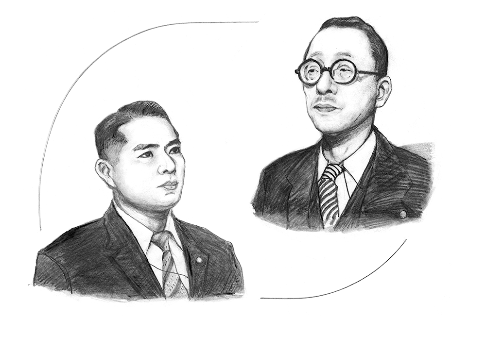 第二代会長戸田城聖先生と若き池田大作先生(『新・人間革命』より)